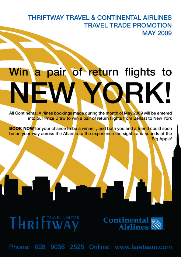 I spent yesterday working on a few minor alterations to flyers I had produced this week, to get them ready for print. Got feedback on the flyer I did for the Continental Airlines Promotion that will be run throughout the month of may. I also put together an eflyer to be sent out to the companies that Thriftway Travel deal with to inform them that we won't be open on May Day. These can be seen here (Continental Airlines Promotion) and here (May Day Eflyer) respectively.