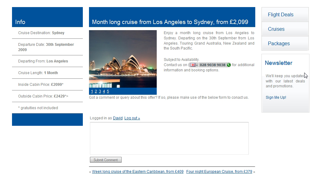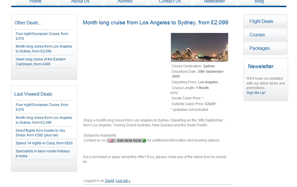Today I spent continuing the work on the Thriftway Site. Had a few deals to put on at the start of the day and then it was straight into the coding. Both the Cruises and Package Deals sections have their individual post designs implemented. Unfortunately I haven't been able to implement the design into either the Flights or the Category areas. This is due to a complete lack of any Flight deals on the site for me to test things with to ensure that they're working.